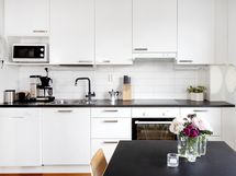 - Laminaattitasot, Astianpesukone, Keraaminen liesi, Liesituuletin, Integroidut koneet, Paljon kaappitilaa, Liesikupu, Jää-pakastinkaappi, Uuni erikseen