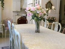 Poikkeuksellisen pohjaratkaisun ansiosta sisätiloissa kartanomaista tunnelmaa. Todella tilavasta keittiöstä sekä uloskäynti, että käynti ruokasaliin, jatkuen edelleen olohuoneeseen. Olohuoneen jälkeen kph/wc ja yksi makuuhuone. Muut makuuhuoneet sijoittuvat toiseen päätyyn.