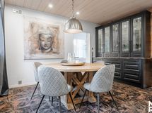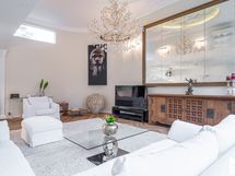 - Liesi: muu, induktio. Työtasot: kivi. Kylmäsäilytys: jääkaappi/pakastin, viinikaappi. Varustus: mikroaaltouuni, astianpesukone, liesituuletin / suodatin. Upea kartanotyylinen keittiö, jossa myös saareke, jossa viinikaappi, tilaa hyvin isolle ruokapöydälle ja kulku sivu-eteisen kautta pihalle.