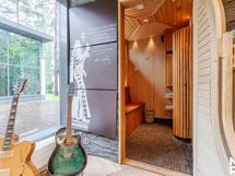 - Kuvaus: Ihastuttava saunaosasto. Saunassa myös tv-ja jääkaappi saunajuomille. puukiuas