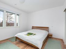 Yläkerrassa on makuuhuoneet ja tilava aulatila, josta pääsee parvekkeelle. Aulatilassa on integroitu jäähdytyskasetti. Vaatehuolto on suunniteltu helpoksi tilavassa kodinhoitohuoneessa. Säilytystilaa löytyy, on vaatehuoneita sekä lämmin varasto autotallin yhteydessä.