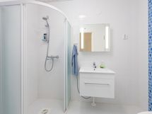 Varustus: lattialämmitys, wc-istuin, suihku, peilikaappi. Varustus: peilikaappi.