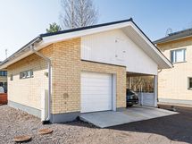 Erillinen autotalli, jonka yhteydessä autokatos sekä tilava varasto. Autotallissa on lattialämmitys, lämmin vesi, öljynerotuskaivo ja voimavirta.
