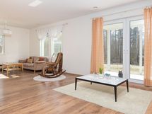 Lattia: Keittiössä: laminaatti. Pesutiloissa: laatta. Erillisessä WC:ssä: laatta. Olohuoneessa: laminaatti. Makuuhuoneessa: laminaatti. Saunassa: laatta. Kodinhoitohuoneessa: laatta. Seinät: Keittiössä: maalattu. Pesutiloissa: kivi. Erillisessä WC:ssä: kaakeli, maalattu. Olohuoneessa: maalattu. Makuuhuoneessa: maalattu. Saunassa: puu. Kodinhoitohuoneessa: maalattu.