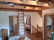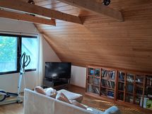Talossa on tiiliverhoiltu alakerta, puuverhoiltu yläkerta, harjakatto, 2 kerrosta, joka on jatkettu korkeana tilana 3 kerroksen parveksi. Alakerrassa myös sauna / kph ja kodinhoitotilat ja keittiö ja toinen tilava olohuone. Pintaremontilla voit tehdä tästä unelmien kodin.