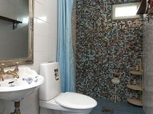 Talo B: kph/wc ensimmäisessä kerroksessa: suihku, wc-istuin, pesuallas, peili ja ikkuna. Kylpyhuone kellarissa: kaksi suihkua ja pyyhekuivain. Lattia ja seinät laatoitettu. Erillisten WC:n lukumäärä: 2. Erillisen WC:n kuvaus: Talo A: wc-istuin, pesuallas, allaskaappi, peilikaappi ja. Lattia laattaa ja seinät lasikuitutapettia.