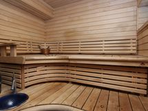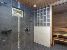 - Molemmissa taloissa saunat kellarissa. Sun Sauna muotolauteet, Helo sähkökiukaat ja vesipisteet. Lattiat laatoitettu ja seinät puupaneelia.