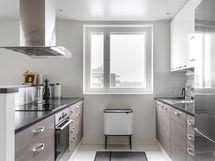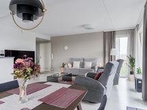 - Jääkaappipakastin, erillisuuni, induktioliesi vuodelta 2023, liesituuletin, mikroaaltouuni, astianpesukone, kaapistot, kiinteät valaisimet.