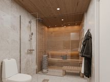 Kalsiitin pintamateriaalit ovat tarkoin valitut, laadukkaita ja aikaa kestäviä. Sisustussuunnittelija on luonut vaalean raikkaan värimaailman, jossa puun kauniilla sävyllä tehostetaan skandinaavista tyyliä. Kylpyhuoneisiin on luotu harmoninen spa-tyyli. Keittiön on värimaailmaltaan valkoinen, johon yhdistyy kauniisti seinien vaalean harmaan sävy ja tammiparkettilattia. Keittiön tasot ovat 20mm ohutta laminaattia ja sävyltään kokonaisuuteen yhtenevät. Kaikki kodinkoneet ovat integroituja ja lisäksi nykyaikainen tasoon upotettu liesitasotuuletin viimeistelee tyylikkään kokonaisuuden.