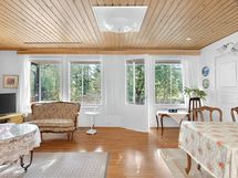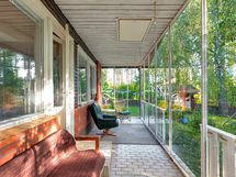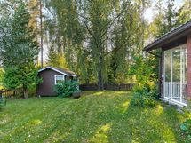 Tämä vuonna 1979 valmistunut tiiliverhoiltu puutalo sijaitsee suojaisalla ja vehreällä 803 m2 tontilla. Talon kokonaispinta-ala on 146m2, johon on laskettu mukaan koko talon levyinen lasitettu terassi - täällä voit nauttia Suomen kesästä vielä vähän pidempään.