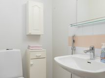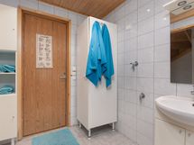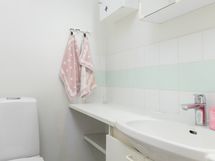 - suihku, pesukoneliitäntä, pesuallas, peili ja allaskaappi.