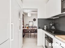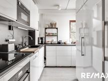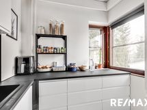 - Keittiön varusteet: Jääkaappipakastin, uuni, mikroaaltouuni, liesituuletin, liesi ja astianpesukone. Liesi: Induktioliesi.