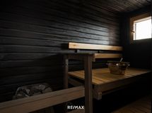 - Kiuas: Sähkökiuas. Tyylikäs sauna jossa ikkuna.
