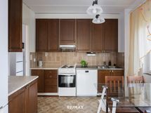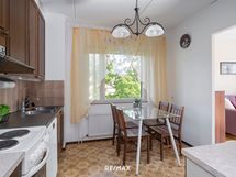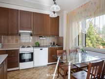 - Keittiön varusteet: Jää-viileäkaappi, liesi ja astianpesukone. Liesi: Sähköhella. Työtason materiaali: Laminaatti. Keittiö avautuu olohuoneeseen ja remontin yhteydessä on mahdollista tehdä avokeittiö.