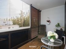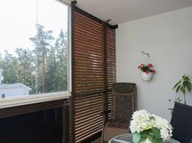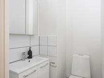 Täältä on käynti parvekkeelle!. Erillisten WC:n lukumäärä: 1. Erillisen WC:n varusteet: WC-istuin, allaskaappi, bidee-suihku, peilikaappi ja pesuallas. Erillisen WC:n kuvaus: Tyylikkäästi saneerattu wc-tila.
