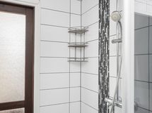 - Pesutilojen varusteet: Suihku, lattialämmitys, peilikaappi, allaskaappi, suihkuseinä ja pesuallas. Pesutilojen kuvaus: Pesuhuone on tyylikäs ja tilava, kosteat tilat ovat kauttaaltaan saneerattu vuonna 2021 taloyhtiön valvonnassa.
