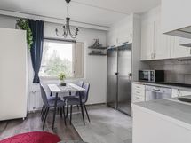 - Jääkaappi, pakastekaappi, sähköliesi, liesituuletin, astianpesukone, kaapistot, kiinteät valaisimet.