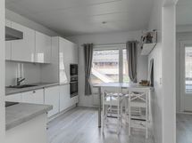 - Jääkaappipakastin, erillisuuni, liesitaso (induktio), mikroaaltouuni, astianpesukone, kiinteät valaisimet.