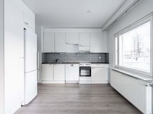Hyvin varusteltu keittiö sisältää mm. keraamisen lieden ja astianpesukoneen.