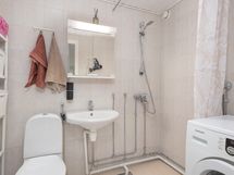 - Pesutilojen kuvaus: Varustus: Suihku, Wc istuin, Pesukoneliitäntä, Hana, Allas, Peilikaappi