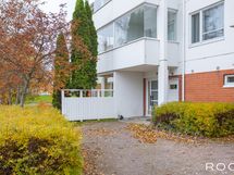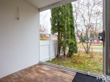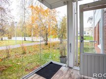- Lasitettu terassi taloyhtiön etupihan suuntaan.