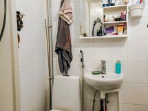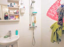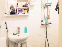 - Pesutilojen varusteet: WC-istuin, suihku, pesukoneliitäntä, pesuallas ja peilikaappi. Pesutilojen kuvaus: Saneerattu osakkaan teettämänä 2022, Taloyhtiö kustantanut vesieristyksen.