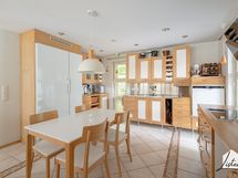 - Keittiön varusteet: Jääkaappi, erillinen pakastin, viinikaappi, erillisuuni, liesituuletin, astianpesukone ja mikroaaltouuni. Liesi: Keraaminen liesi. Työtason materiaali: Puu.