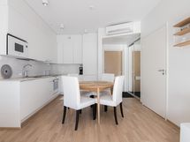 Muuta kauppaan kuuluvaa: Asunnossa viilentävä ilmalämpöpumppu.