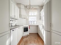 - Jääkaappipakastin, lattialiesi, induktioliesi, liesituuletin, astianpesukone, kaapistot, kiinteät valaisimet.