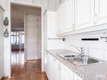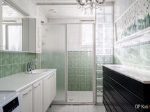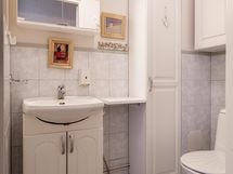 - Kylpyhuone, erillinen wc, suihku, suihkuseinä, peilit, peilikaappi, kaapit, allaskaappi, pesukoneliitäntä, kiinteät valaisimet.