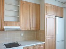 Kaapistot, jääkaappi/pakastin, keraaminen liesi, liesituuletin, astianpesukone