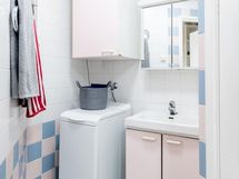 - Sauna, sähkökiuas, kylpyhuone, suihku, suihkuseinä, peilikaappi, kaapit, allaskaappi, pesukoneliitäntä, lattialämmitys, kiinteät valaisimet.