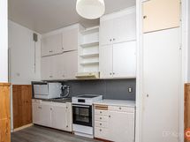 - Jääkaappipakastin, sähköliesi, liesikupu, kaapistot, kiinteät valaisimet.