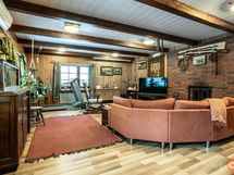Keittiö: laatta, maali, paneeli. Olohuone: laminaatti, tapetti, paneeli. Makuuhuone 1: ponttilauta, tapetti, paneeli. Makuuhuone 2: ponttilauta, tapetti, paneeli. Makuuhuone 3: ponttilauta, paneeli, paneeli. Kodinhoitohuone: laatta, levy, paneeli. Sauna: laatta, paneeli/laatta, paneeli. Kylpyhuone: laatta, laatta, paneeli. Eteinen: laminaatti, paneeli, paneeli. Wc: laatta, laatta, paneeli. Yläkerran aula: ponttilauta, paneelii, paneeli. Tupa: laminaatti, paneeli, paneeli.