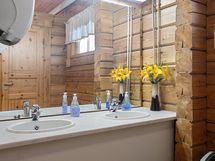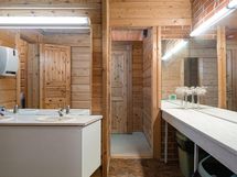 - Kylpyhuone 2 kpl, suihku, peilikaappi, wc-istuimet kylpyhuoneissa, lattialämmitys, kiinteät valaisimet, kylpyhuonekaapisto, sähkösauna, lämminvesivaraaja, erillinen wc, peilikaappi, kaapistot, kiinteät valaisimet, kodinhoitohuone, pesukoneliitäntä, lattialämmitys.
