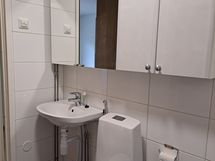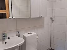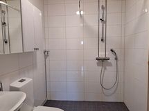 - Pesutilojen varusteet: Peilikaappi, lattialämmitys, allaskaappi, suihku, pesukoneliitäntä ja wc-istuin.