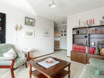 Keittiö: Muovimatto, maali/tapetti. Olohuone: Muovimatto, maali/tapetti. Makuuhuone 1: Muovimatto, maali/tapetti. Sauna: muovimatto, paneeli. Kylpyhuone: Muovimatto, kaakeli. Wc: Muovimatto, maali.