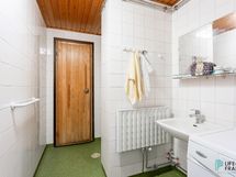 Sauna, sähkökiuas, kylpyhuone, erillinen wc, suihku, pesukoneliitäntä, kiinteät valaisimet.