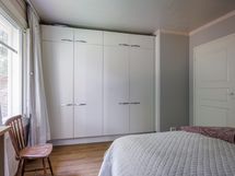 Lattia: Keittiössä: laatta. Pesutiloissa: laatta. Erillisessä WC:ssä: laatta. Olohuoneessa: vinyylikorkki. Makuuhuoneessa: vinyylikorkki. Saunassa: laatta. Kodinhoitohuoneessa: laatta. Seinät: Keittiössä: maalattu, puu. Pesutiloissa: kaakeli. Erillisessä WC:ssä: maalattu, puu. Olohuoneessa: puu. Makuuhuoneessa: maalattu, puu, tapetti. Saunassa: puu. Kodinhoitohuoneessa: maalattu.