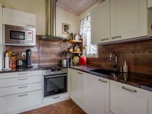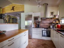 Liesi: induktio. Työtasot: kivi. Kylmäsäilytys: jääkaappi, pakastin. Varustus: astianpesukone, liesituuletin / hormi.