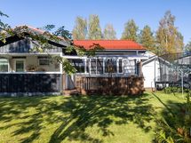 - Asuintilojen pinta-ala on noin 119 m2, joihin on luettu olohuone, keittiö, eteinen, 3 makuuhuonetta, kylpyhuone, sauna ja erillinen wc. Katettu terassi on noin 12 m2 ja lasitettu terassi on noin 9 m2. Ulkovarasto on noin 20 m2. Talon rakennusala on rakennuspiirustusten mukaan 126 m2. Pinta-alan tiedot perustuu rakennuspiirrustuksista ja myyjältä saatuihin tietoihin. Pinta-alaa ei ole tarkistusmitattu eikä kauppahinta perustu pinta-alaan.