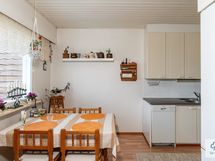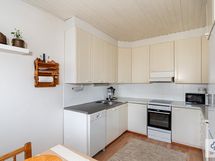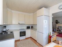 Keittiön varusteet: Jääkaappipakastin ja liesi. Liesi: Keraaminen liesi. Työtason materiaali: Laminaatti.