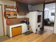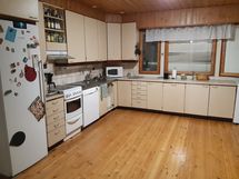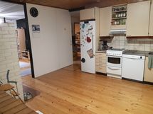 Liesi: keraaminen, muu, puuliesi. Kylmäsäilytys: jää/viileäkaappi, pakastin. Varustus: liesituuletin, astianpesukone, kiinteät valaisimet. Seinät levyä. Keittiöstä käynti maakellariin.