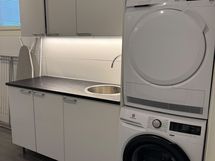 - Suihku, Pesukone, Kuivausrumpu, Laattalattia, Avattava ikkuna, Lattialämmitys