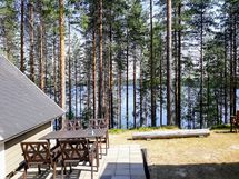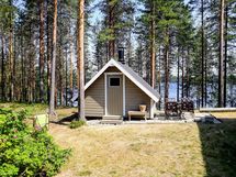 Talon vieressä sijaitsee kota, joka avautuu järvelle päin – täydellinen paikka rentoutumiseen ja iltahetkiin.