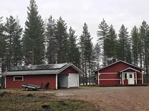 Ulkorakennus, jossa halkoliiteri, lukittava varasto, lämmitettävä pieni talli sekä avokatos yhdelle autolle.