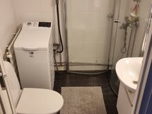 Suihku, Pesukone, Peilikaappi, Allaskaappi, Laattalattia, Laattaseinä