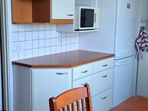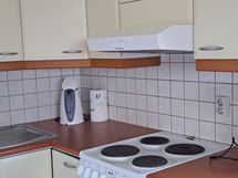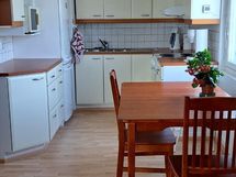 - Laminaattitasot, Paljon kaappitilaa, Tilaa isolle ruokapöydälle, Sähköliesi, Liesituuletin, Jää-pakastinkaappi