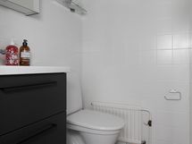 Sauna, sähkökiuas, kylpyhuone, erillinen wc +istuin kylpyhuoneessa, suihku, suihkuseinä, peilikaappi, allaskaappi, pesukoneliitäntä, lattialämmitys kylpyhuone ja sauna, kiinteät valaisimet. Sauna ja kylpyhuone remontoitu v.2020