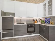 Jääkaappi, pakastekaappi, induktioliesi, liesituuletin, astianpesukone, kaapistot, kiinteät valaisimet. Keittiö koneineen uusittu v.2020